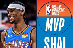 西部決賽5場,亞歷山大場均31.4分5.2籃板8.2助攻1.8搶斷,投籃命中率45.7%,三分命中率31.8%,罰球命中率86.3%。