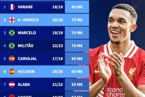 體育資訊6月4日訊 德國(guó)轉(zhuǎn)會(huì)市場(chǎng)網(wǎng)統(tǒng)計(jì)了皇馬隊(duì)史后衛(wèi)身價(jià)榜單,今夏新援阿諾德德轉(zhuǎn)身價(jià)7500萬(wàn)歐元第二,懷森6000萬(wàn)歐元第六。