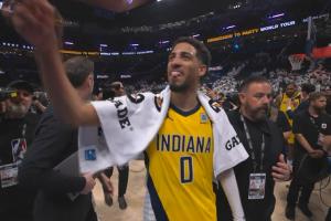 賽后,哈利伯頓在場邊表示:“感謝教練的信任!他沒有叫暫停,成就了我們!我們一直相信著!在比賽時間走到0之前我們都不會放棄!”