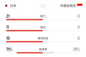 體育資訊06月10日訊 18強賽第10輪,日本主場6-0橫掃印尼,全場數(shù)據(jù)日本狂射21腳11次射正,印尼0射門!