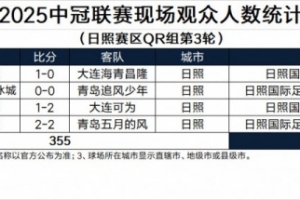 2025中冠聯(lián)賽現(xiàn)場(chǎng)觀眾人數(shù)統(tǒng)計(jì)(日照賽區(qū)QR組第3輪) ???
