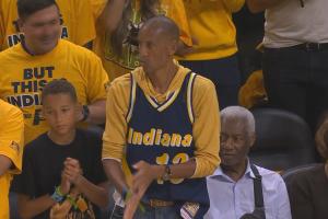 雷吉-米勒任職的TNT總決賽沒有轉播權~雷吉-米勒場邊當了一個純粹的球迷來看總決賽了~