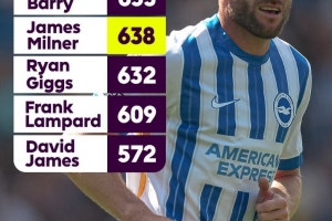 體育資訊6月13日訊 布萊頓官方宣布與米爾納續(xù)約一年,英超官方也曬出聯(lián)賽歷史出場(chǎng)次數(shù)榜,其中米爾納據(jù)榜首還有15場(chǎng)差距。