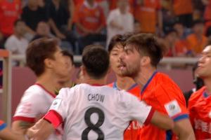 體育資訊06月20日訊 泰山vs蓉城第62分鐘,澤卡被楊明洋放倒,隨后韋世豪跟上一腳解圍正好踢到澤卡身上!雙方隨即爆發(fā)沖突!