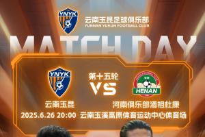 體育資訊06月26日訊 20點中超第15輪,云南玉昆主場迎戰(zhàn)河南隊。