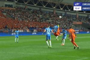 體育資訊06月26日訊 玉昆vs河南第16分鐘,韓子龍嘗試倒鉤射門,正好蹭到頭球解圍的劉易鑫!劉易鑫接受治療,韓子龍吃到黃牌一張。