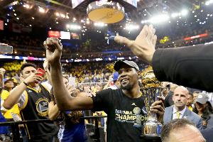 在勇士的3個(gè)賽季里,杜蘭特兩度獲得NBA總冠軍,蟬聯(lián)總決賽MVP。