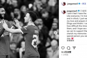 此刻我不知該說什么好。和大家一樣,我真的感到無比痛心和震驚。我只想向迪奧戈(若塔)和安德烈的家人送上我所有的愛與祈禱。
