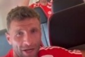賽前穆勒秀出一段在飛機內拍攝的視頻,他表示即將飛往比賽城市亞特蘭大,大家是否準備就緒,凱恩回答準備好了,并喊了一聲“siu”。