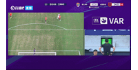 足協(xié)杯第五輪青島海牛vs成都蓉城,上半場(chǎng)補(bǔ)時(shí)最后階段,德?tīng)柤佣酂o(wú)球狀態(tài)肘擊孫正傲,裁判看VAR后向德?tīng)柤佣喑黾t牌。