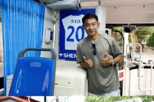 體育資訊7月29日訊 今日,記者楊翼更新社媒,曬出了于漢超與申花主題巴士合影,照片中于漢超與自己的球衣號(hào)一同合影。