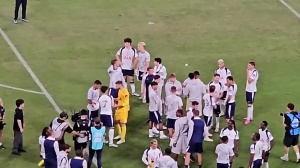 體育資訊8月1日訊 熱刺在昨晚的熱身賽1-0戰(zhàn)勝阿森納,賽后頒獎(jiǎng)階段,不少隊(duì)友都要把隊(duì)長(zhǎng)袖標(biāo)給孫興慜戴上,但孫興慜一直在躲。