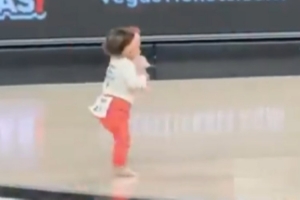 比賽中場間歇時舉辦了嬰兒爬行比賽,其中一個小寶寶爬著爬著突然“覺醒”,直接站立起來完成了人生第一次行走!這一幕也逗得現(xiàn)場眾人大笑。