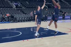 下一篇: 這狀態(tài)看起來很不錯?。±乱呀涢_始訓練急停&后撤步三分~